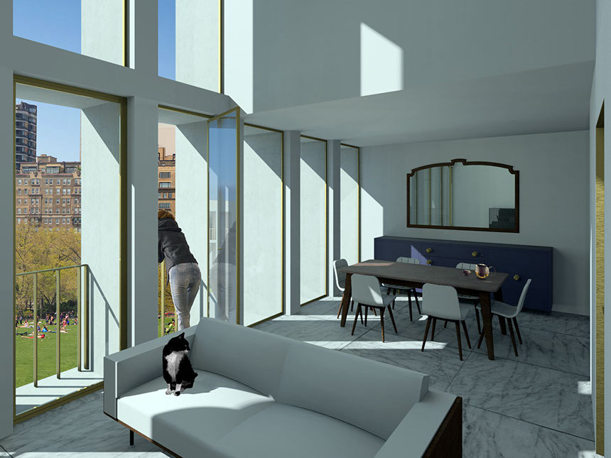 The apartments typology range between studios to four bedrooms, even though the latter is reserved to exceptions. The two and three bedrooms apartments are duplex and have a strong play of ceiling heights between the common areas.
