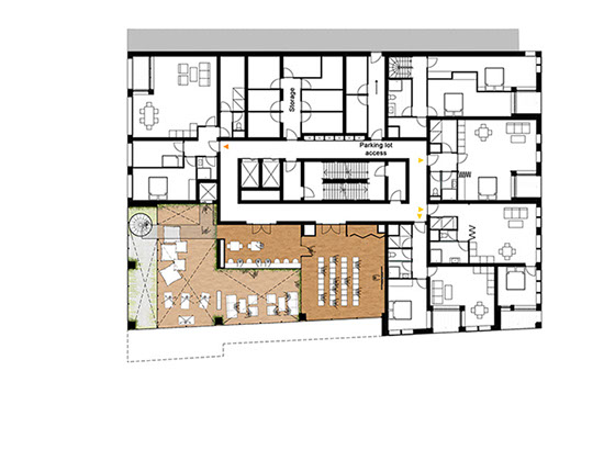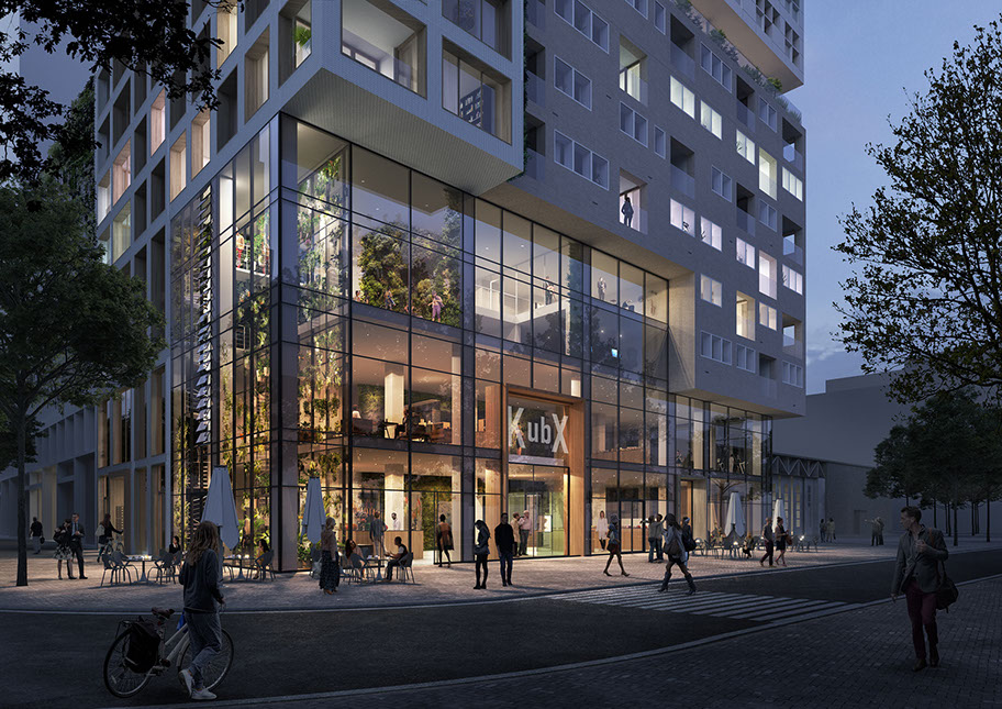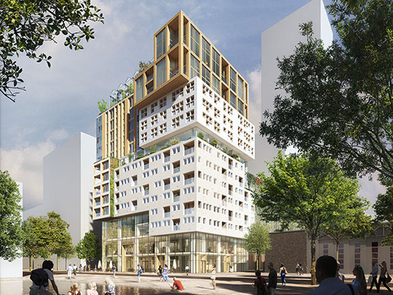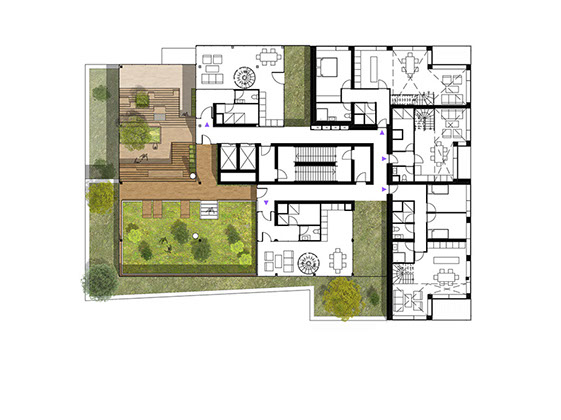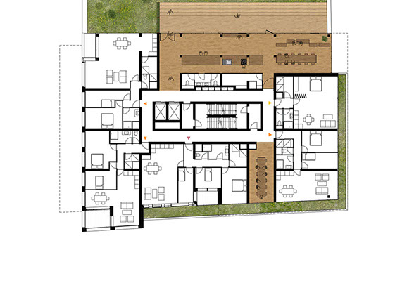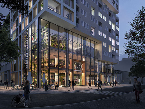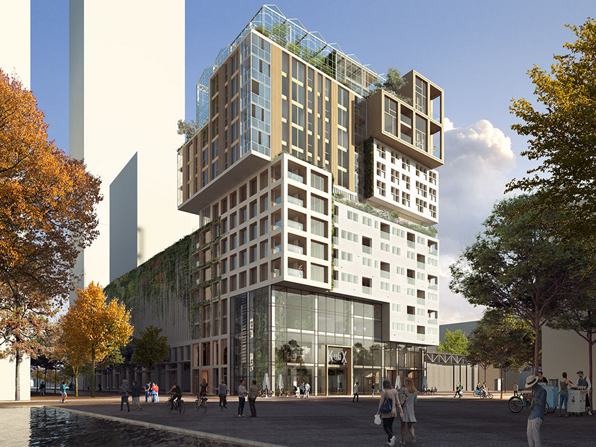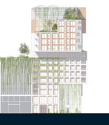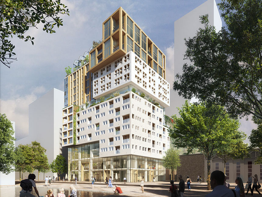 Como o projeto foi desenvolvido para um grupo diversificado de utilizadores, a fachada é composta por um conjunto de blocos reconhecíveis. Cada um tem o seu próprio tipo de apartamento, embora em cada andar sempre haja uma mistura de tipos diferentes. O empilhamento desigual cria espaços livres que são usados para como corredores verdes comunitários.