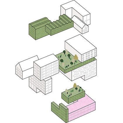 Pode-se definir uma vizinhança por uma unidade de área com um raio de 400 metros ou 5 minutos de caminhada. Uma vizinhança ativa nunca é monofuncional, muda constantemente e oferece uma ampla diversidade de espaços de convivência. Através da combinação de dez blocos de pequena escala, cada um com a sua própria identidade e programa, uma micro vizinhança é criada dentro do terreno.