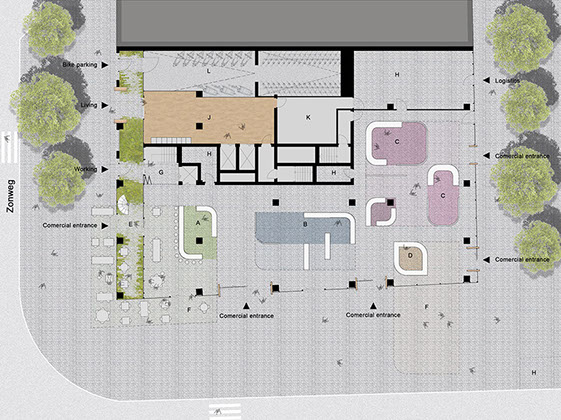 The Trekvliet industrial area is currently undergoing a transformation into an active living and working environment. This is accompanied by the challenge of creating a local identity that has not yet been established; and fill it with the infrastructures that it’s users will need.